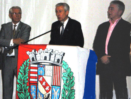 de la Région Provence Alpes Côte d'Azur, entouré du Président fondateur Alain BIDEAUX (également délégué MDF - 06), des personnalités et organisateurs et de Mme GRIMALDI Giovanina, Secrétaire Générale du MDF.