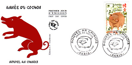 En avant première, émission Premier Jour les 27 et 28/01/2007 à l'Espace des Blancs Manteaux, en partenariat avec la Mairie du 4ème et la participation du Centre Culturel de Chine à Paris. La Poste a rendu hommage, comme chaque année, au système astrologique chinois en lui consacrant un timbre sur l'animal dont on fête l'arrivée.